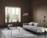 “Pebble Rug is inspired by the sensuous feeling of a pebbled beach with its diverse and tactile surface, inviting you to take off your shoes and walk across it barefooted. With a handwoven structure that references fashion textiles, the Pebble Rug plays with the contrasting materials of its soft, woolen loops, sitting atop a sturdy canvas base in cooling jute yarn. Pebble Rug brings a new perspective to any space through its woolen loops, popping up from the ground like sprouts in a bed of moss, joined by the distinct woven texture of its surface.”
