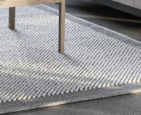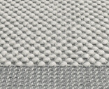 Pebble Rug -matossa on monimuotoinen ja taktiilinen pinta, joka muistuttaa sitä aistillista tunnetta kun kävelee kivikkoisella rannalla. Käsinkudottu rakenne kontrastoi pehmeiden villasilmukoiden tuntua tukevamman villalaadun canvas-pohjaan.
