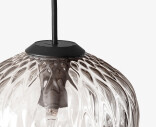 "The pendant was conceived as an exploration of the reflections, distortions, and refractions of a light source when surrounded by patterned glass. Wilkinson looked into a wide range of inspirations when developing Blown: antique ceramics, old glass pieces, lenses from very old lamps, lighthouses, even a mirrored bottle, just to see the way the light comes off it. He sought inspiration in seeds and berries - particularly raspberries - for the quilted texture of the glass. Blown makes a statement as a standalone item, but works equally as well in clusters or in succession. The translucent glass transforms the space it inhabits with the intricate textures and patterning."