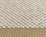 Matto on käsinkudottu 100%:sta Uuden-Seelannin villasta. Pohja on 100% puuvillaa ja synteettistä lateksia, mikä takaa, että matto asettuu tasaisesti lattialle. Maton pohja on tehty juutista. Luonnolliset värivaihtelut esiintyvät villan perusvärin ja juutin ominaisuuksien vuoksi, mikä korostaa Pebble Rug -maton luonnollista tunnetta.