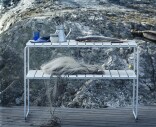 Maria Håårdin ja Jan-Olof Ågrenin suunnittelema sivupöytä L105 erottuu älykkäällä kaksitasoisella rakenteellaan, jossa alempi hylly tarjoaa lisälaskutilaa tarjoiluun tai säilytykseen. Vankka kuumasinkitystä teräsputkesta valmistettu runko tekee pöydästä säänkestävän ja kestävän ympäri vuoden ulkokäyttöön.