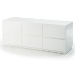Tilava modulaarinen senkki, jossa on kolme leveää laatikkomoduulia valkolakatulla pinnalla. Soft-close-mekanismi ja piilotetut kuulalaakeroidut kiskot takaavat sujuvan ja hiljaisen käytön.