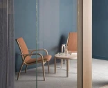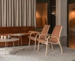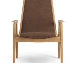 Laminett on matala, kauniisti muotoiltu nojatuoli, jossa on taivutettu puurunko ja verhoiltu istuinosa. Se on sirompi versio Lamino-klassikosta – yhtä ajaton ilmeeltään, mutta kevyemmän tuntuinen.
