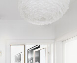 EOS large riippuvalaisin lumoaa kevyellä kauneudellaan. Luonnollisista, eettisesti kerätyistä hanhenhöyhenistä käsintehty lampunvarjostin valaisee pehmeällä, lämpimällä valolla ja tuo tekstuuria ja persoonallisuutta sisustukseen. Höyhenvalaisin sopii täydellisesti makuuhuoneeseen, olohuoneeseen tai pilvimäisen muotonsa ansiosta lastenhuoneeseen. Helppo puhdistaa pölystä hiustenkuivaimen avulla.