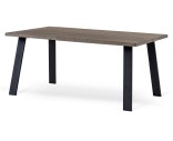 Massiivi harmaa petsattu tammi ruokapöytä, musta metallijalusta.