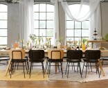 Laadukas Brent ruokapöydän tuoli. Verhoiltu istuin musta PU-nahka ja mustat metallijalat. Selkäosa mustalakattua saarniviilua.