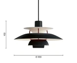 PH 5 Mini Black Edition jakaa saman ikonisen muotoiluperiaatteen kuin alkuperäinen malli, mutta kompaktimmassa koossa, joka sopii täydellisesti pienempien pöytien ylle, ikkunasyvennyksiin tai useamman valaisimen ryhmäksi keittiösaarekkeen ylle. Kolminkertainen varjostinrakenne luo pehmeän ja häikäisemättömän valon, kun taas mustat pinnat ja hillityt tehostevärit muodostavat hienostuneen kontrastin.