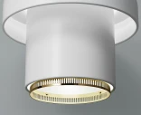 Pendellampan A201 är en tidlös och elegant taklampa designad av Alvar Aalto 1952 för Säynätsalon kommunhus. Med sin skulpturala form och genomtänkta ljusfördelning skapar den en harmonisk och inbjudande atmosfär i rummet. Ljuset silas både uppåt och nedåt genom den perforerade mässingsringen, vilket ger en mjuk och naturlig ljusspridning.