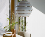 Artek A331 taklampan är en älskad klassiker, designad 1953 av Alvar Aalto. Lampan är även känd som Beehive (bikupan). Formen består av en vitmålad aluminiumskärm och ringar i kromat stål genom vilka ljuset silas i vackra ränder. Den skulpturala Bikupan ger interiören en tidlös stil typisk för Aalto.