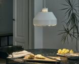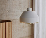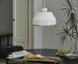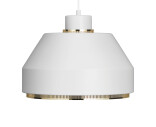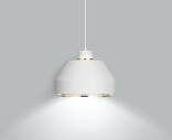 Artek taklampa AMA500, som är formgiven av Aino Aalto år 1941, är en medelstor pendel som ger ett mjukt och varmt ljussken. AMA500 är tillverkad av vitlackerad metall med detaljer i mässing och tack vare dess breda nedåtriktade ljusbild gör den sig bra som enda ljuskälla över exempelvis ett matbord eller ett skrivbord.