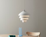 Valencia pendel har en diffuserad, mjukt strålande lamellkonstruktion, som har hämtat sitt formspråk från hängande druvklasar. Den kromade toppen, som symboliserar stjälken, bildar ett distinkt avslut. Det är en modern och populär taklampa som är anpassad för takkrok.