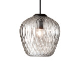 "The pendant was conceived as an exploration of the reflections, distortions, and refractions of a light source when surrounded by patterned glass. Wilkinson looked into a wide range of inspirations when developing Blown: antique ceramics, old glass pieces, lenses from very old lamps, lighthouses, even a mirrored bottle, just to see the way the light comes off it. He sought inspiration in seeds and berries - particularly raspberries - for the quilted texture of the glass. Blown makes a statement as a standalone item, but works equally as well in clusters or in succession. The translucent glass transforms the space it inhabits with the intricate textures and patterning."