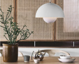 Flowerpot VP7 -taklampan är en mellanstor version av Verner Pantons klassiska Flowerpot-lampserie från 1968. VP7 passar perfekt till exempel ovanför matbordet.