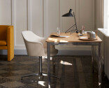 "Tripod reflects the clean minimalism of Old Masters Hvidt & Mølgaard. A table lamp built from powder-coated steel with brass details, it strikes a delicate balance between the stark simplicity of its design and the softness injected by the curved edges of its base. First designed in 1953, Tripod never made it to production – until &Tradition decided to release it."