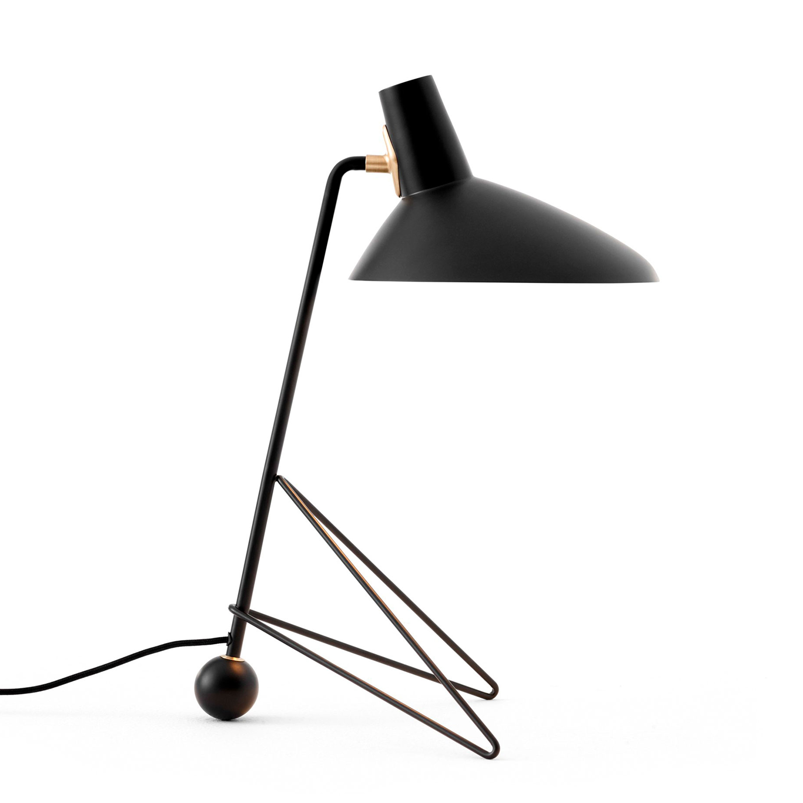 &Tradition Tripod bordslampa i mattlackerad metall med detaljer i mässing. Design Hvidt & Mølgaard.