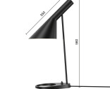 Klassikerlampan AJ Bord ger ett mjukt nedåtriktat ljus, och vinkeln på skärmen kan justeras efter behov. Skärmen är vitmålad på insidan vilket ger ljuset en behaglig spridning.