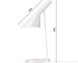 Klassikerlampan AJ Bord ger ett mjukt nedåtriktat ljus, och vinkeln på skärmen kan justeras efter behov. Skärmen är vitmålad på insidan vilket ger ljuset en behaglig spridning.