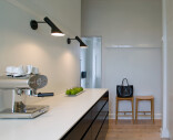 Vägglampan ger ett direkt, nedåtriktat ljus. Det vippbara armaturhuvudet kan justeras i sidled för att optimera ljusfördelningen. Skärmen är vitmålad på insidan vilket ger ljuset en mjuk och behaglig spridning.