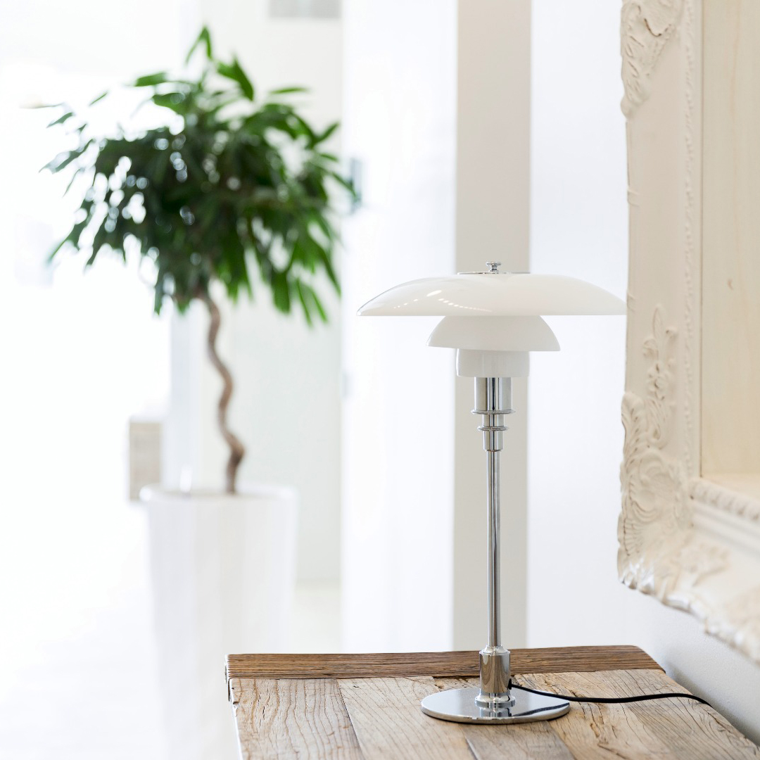PH 2/1 -lampan har formgivits utifrån principen om ett reflekterande treskärmssystem som riktar merparten av ljuset nedåt. Skärmarna är utförda i munblåst, opaliserande glas i tre lager som är blankt på utsidan och sandblästrat matt på insidan, vilket ger ett mjukt och diffust ljus.