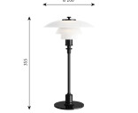 PH 2/1 -lampan har formgivits utifrån principen om ett reflekterande treskärmssystem som riktar merparten av ljuset nedåt. Skärmarna är utförda i munblåst, opaliserande glas i tre lager som är blankt på utsidan och sandblästrat matt på insidan, vilket ger ett mjukt och diffust ljus.