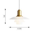 PH 2/1 pendel är en av de minsta medlemmarna i PH-treskärmsfamiljen. Lampan har formgivits utifrån principen om ett reflekterande treskärmssystem som riktar merparten av ljuset nedåt. Skärmarna är utförda i munblåst, opaliserande glas i tre lager som är blankt på utsidan och sandblästrat matt på insidan, vilket ger ett mjukt och diffust ljus.