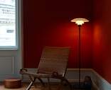 Golvlampan PH 3½-2½ ger rummet elegans och behagligt ljus. Armaturen har formgivits utifrån principen om ett reflekterande treskärmssystem som riktar merparten av ljuset nedåt. Skärmarna är utförda i munblåst, opaliserande glas i tre lager som är blankt på utsidan och sandblästrat matt på insidan, vilket ger ett mjukt och diffust ljus.