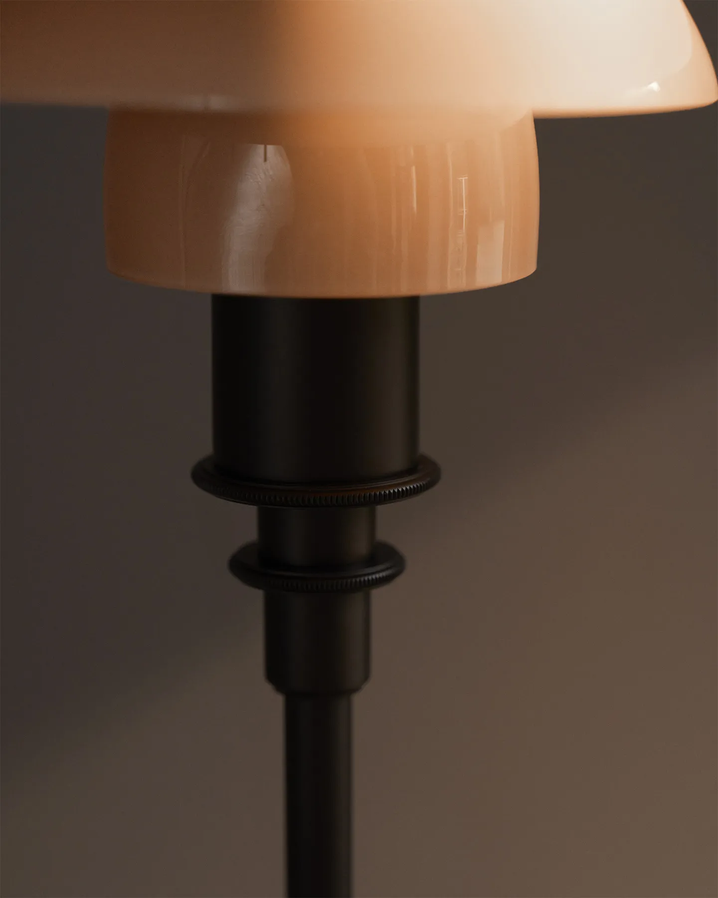 PH 3/2 Dusty Terracotta Limited Edition är en hyllning till Poul Henningsens ikoniska tre-skärmssystem från 1927. Skärmarna är tillverkade i fyralagers munblåst glas i en mjuk terrakottaton, med blank utsida och sandblästrad vit insida som sprider ett behagligt och helt bländfritt ljus. Foten i åldrad mässing har en borstad struktur och är lackerad för att bevara sin eleganta finish över tid.