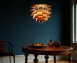 PH Artichoke pendeln är en klassisk design som verkligen är tidlös och blir ett vackert tillskott till varje rum. PH Artichoke i äkta koppar har ett 100 % bländfritt ljus tack vare de 72 bladen, som bildar 12 exakt placerade rader med sex blad i varje. Armaturen ser till att ljuset fördelas inåt och utåt, vilket ger en vacker och behaglig belysning.