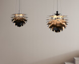 År 1958 ritade Poul Henningsen PH Artichoke för Langelinie Pavilion, en modernistisk restaurang i Köpenhamn, där den klassiska lampan fortsätter att fascinera gästerna än idag. Den skulpturala designen och det exceptionella ljuset har gett lampan dess status som internationell designikon. Vart och ett av de 72 bladen är noggrant monterat i perfekt position för hand för att säkerställa ett bländfritt ljus och att ljuskällan inte kan ses från någon vinkel. Den berömda armaturen kan fortfarande fås i sin ursprungliga kopparfinish, men med tiden har versioner i borstat och polerat stål, mässing, vit och svart tillkommit.