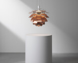 PH Artichoke pendeln är en klassisk design som verkligen är tidlös och blir ett vackert tillskott till varje rum. PH Artichoke i äkta koppar har ett 100 % bländfritt ljus tack vare de 72 bladen, som bildar 12 exakt placerade rader med sex blad i varje. Armaturen ser till att ljuset fördelas inåt och utåt, vilket ger en vacker och behaglig belysning.