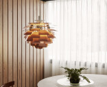 År 1958 ritade Poul Henningsen PH Artichoke för Langelinie Pavilion, en modernistisk restaurang i Köpenhamn, där den klassiska lampan fortsätter att fascinera gästerna än idag. Den skulpturala designen och det exceptionella ljuset har gett lampan dess status som internationell designikon. Vart och ett av de 72 bladen är noggrant monterat i perfekt position för hand för att säkerställa ett bländfritt ljus och att ljuskällan inte kan ses från någon vinkel. Den berömda armaturen kan fortfarande fås i sin ursprungliga kopparfinish, men med tiden har versioner i borstat och polerat stål, mässing, vit och svart tillkommit.