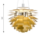 PH Artichoke finns även i storlekarna Ø 480 mm, Ø 720 mm och Ø 840 mm. Dimbar LED kan väljas som alternativ ljuskälla. Fråga vår kundtjänst om de övriga versionerna.