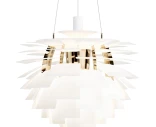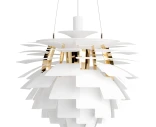PH Artichoke är Poul Henningsens klassiker från 1958. De 72 bladen skärmar ljuskällan och sprider ett mjukt, helt bländfritt ljus – ett skulpturalt uttryck som står sig i både hem och offentliga miljöer.