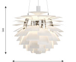 PH Artichoke pendeln är en klassisk design som verkligen är tidlös och blir ett vackert tillskott till varje rum. PH Artichoke i vitlackerad stål har ett 100 % bländfritt ljus tack vare de 72 bladen, som bildar 12 exakt placerade rader med sex blad i varje. Armaturen ser till att ljuset fördelas inåt och utåt, vilket ger en vacker och behaglig belysning.