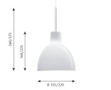 Toldbod 155/220 glas pendeln ger ett bländfritt och huvudsakligen nedåtriktat ljus. Opalglaset ger en mjuk belysning runt armaturen och belyser samtidigt armaturens form på ett elegant sätt.