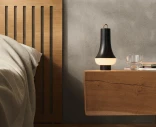Tomoshi är en elegant och uppladdningsbar bordslampa designad av den japanske formgivaren Nendo. Namnet "Tomoshi" betyder "ljus" på japanska, och lampan är skapad för att erbjuda belysning där den behövs, tack vare dess bärbara design och praktiska läderhandtag. Den kan placeras på ett bord eller hängas upp för att skapa ett fokuserat men bländfritt ljus, som både belyser ytan under lampan och sprider ett mjukt sken till omgivningen. Handtaget, som är tillverkat av mörkbrunt äkta läder, kan justeras för att enkelt bära eller hänga upp lampan, och ger ett säkert grepp under transport.