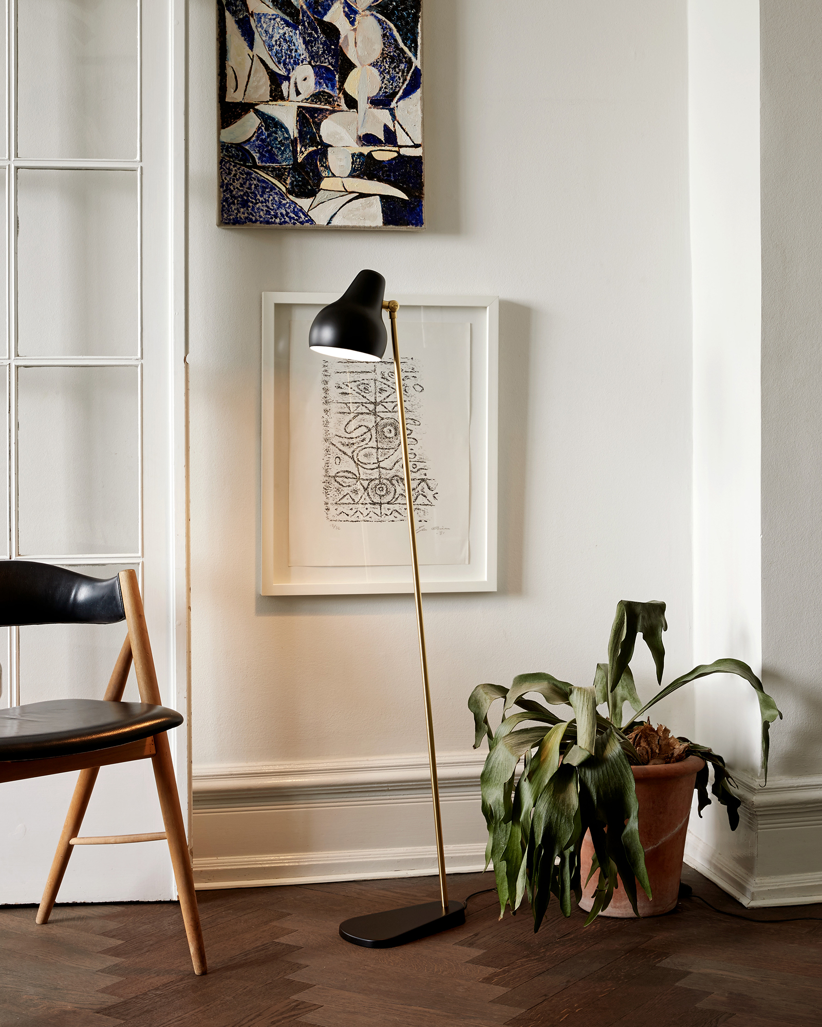 Golvlampan VL38 baseras på den ursprungliga designen för bordslampan VL38, som formgavs i slutet av 1930-talet av arkitekten Vilhelm Lauritzen i samarbete med Louis Poulsen för det danska radiohuset i Köpenhamn.