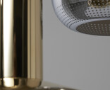 Pendeln avger nedåtriktat, bländfritt ljus. Det radiella perforeringsmönstret runt öppningen skapar en mjukare övergång mellan ljust och mörkt. Perforeringarna skapar ett mjukt och vackert ljusmönster både på skärmen och på omgivande ytor.