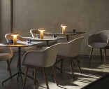 “I wanted the Ease Portable Lamp to have a remarkable quality of light, striking a versatile balance between atmospheric and functional light — after all, that is the wonderful thing about a portable lamp — you can bring a distinct ambience to literally anywhere. I landed on the idea of the top and bottom gently touching, softly meeting each other. There is a sense of lightness to it. This feature allows a large surface to emit light, while the flared bottom firmly stabilizes it. It is these details that give the lamp a sort of human quality, making it a friendly and reliable friend.”