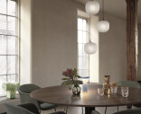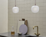 “Designing simple things is often one of the hardest things to do. We wanted to create a simple lamp with a glass shape, giving it a soft expression while making its top and pendant tube as subtle as possible. We were inspired by the shape of acorns for the gentle lines of the pendant while hinting towards