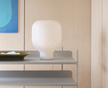 as its diffuser. With its see-through expression, the cocoon material allows for the Strand Table Lamp to filter light for a