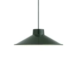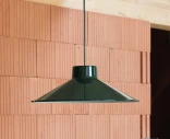 Taklampan Top 36 cm i mörkgrönt är en större modell av den tidlösa lampan, skapad av den prisbelönta designstudion Big-Game. Skärmen i spunnen stål har en högblank yta som tillför en sofistikerad känsla till rummet. Denna variant är idealisk för att hängas över ett matbord eller i ett större utrymme, där dess design lyfter inredningen och tillför ett elegant ljus.