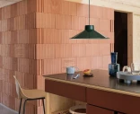 “Top Lamp is our interpretation of the archetypical coneshaped pendant, with a universal and simple design. The lamp’s distinctive top encases its most innovative part—the energyefficient LED light source. Manufactured in spun steel with a graphic rolled hem, the versatile series offers an array of sizes and colors and is as much at home above a bustling bistro table as in the intimate ambiance of a living room.”