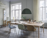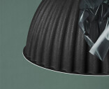 “Under The Bell is more than just a lampshade—when situated over a table or in an open space, the bell-shaped light creates its own space within the environment. As such, the design embraces and shelters the people underneath, both in a physical and abstract manner, for an intimate atmosphere. The design is made using fibers from recycled plastic bottles that, along with its unique shape, enables Under The Bell to absorb sound and improve the acoustics of any room.”
