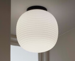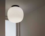 Lantern plafond från New Works är en modern tolkning av traditionella japanska rispapperslampor. Lampan har en enkel svart stålbas och en ripplad glaskupol som ger ett mjukt och behagligt ljus. Den minimalistiska designen gör att den passar perfekt i sovrummet, vardagsrummet eller hallen.