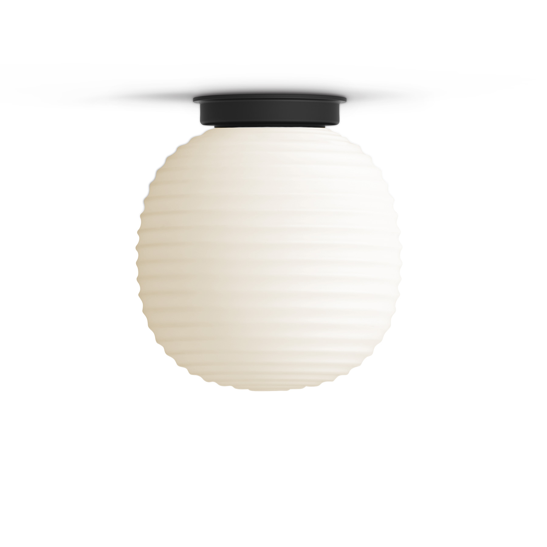 Lantern plafond från New Works är en modern tolkning av traditionella japanska rispapperslampor. Lampan har en enkel svart stålbas och en ripplad glaskupol som ger ett mjukt och behagligt ljus. Den minimalistiska designen gör att den passar perfekt i sovrummet, vardagsrummet eller hallen.