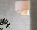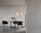 Margin Pendant är en taklampa formgiven av John Astbury. När du tänder Margin Pendant möts du av ett mjukt, filtrerat ljus. Ljuset rör sig genom linneklädda skärmar, med en central metallpendel som ger lampan sin tydliga form. En lampa som förenar textur, volym och enkelhet.