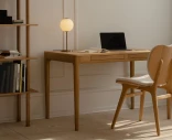 Audrey bordslampa från Umage har en lugn, modern form med mjuka kontraster mellan metall och opalglas. Den ger ett behagligt ljus som passar lika bra i sovrummet som på skrivbordet.