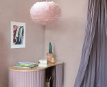 EOS -lampan är en designfavorit med sin lätta skönhet. Lampskärmen är handgjord av naturliga, etiskt tillvaratagna gåsfjädrar och ger ett mjukt och varmt ljus samtidigt som den adderar textur och personlighet till alla slags interiörer. Fjäderlampan passar perfekt i sovrummet, vardagsrummet eller i barnrummet med sin form som liknar ett svävande moln. Fjädrarna kan enkelt rengöras från damm med hjälp av en hårfön.