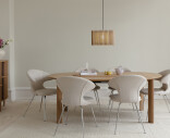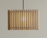 Komorebi är ett japanskt ord för solljus som skiner genom trädens löv, vilket på ett bra sätt beskriver denna lampskärm gjord av trälameller och textil. Kombinationen av trädetaljer och textil hjälper till att jorda hemmet och gör miljön lugn och upplyftande.